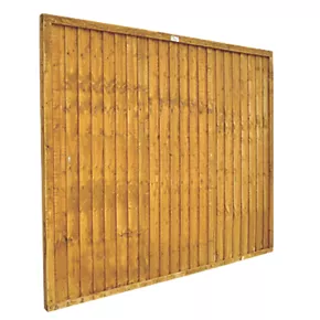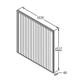 Sturdy and secure fence panels featuring 8mm thick, overlapping square-cut boards. Arranged vertically and sandwiched by a frame all around.