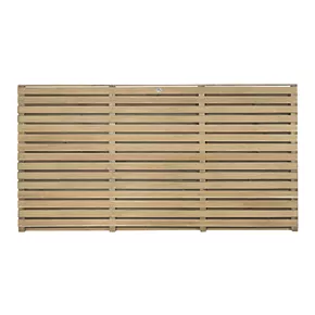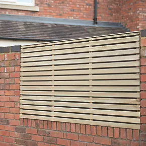 Pressure-treated and smooth-planed timber construction. Can be used without gravel boards. Substantial and stylish panel with a contemporary look. Features slats mounted alternately on the front and back of the panel. Offers privacy whilst still letting some light and air flow through. Ideal for boundaries, screening and partitioning.