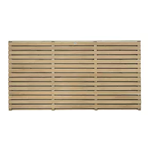 Pressure-treated and smooth-planed timber construction. Can be used without gravel boards. Substantial and stylish panel with a contemporary look. Features slats mounted alternately on the front and back of the panel. Offers privacy whilst still letting some light and air flow through. Ideal for boundaries, screening and partitioning.