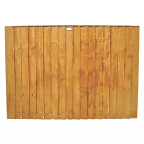 Dip-treated feather edge fence panels. With 50 x 30mm framing all around, 2 additional horizontal battens across the back and 50mm shaped capping strips.