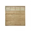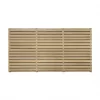 Dip-treated feather edge fence panels. With 50 x 30mm framing all around, 2 additional horizontal battens across the back and 50mm shaped capping strips.