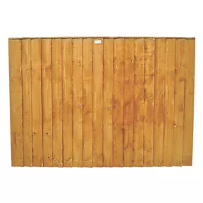 Dip-treated feather edge fence panels. With 50 x 30mm framing all around, 2 additional horizontal battens across the back and 50mm shaped capping strips.