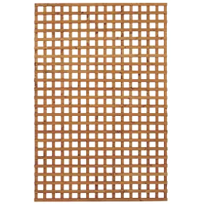 Contemporary, smooth-planed square trellis with 15mm thick by 30mm wide battens which give plenty of room for climbing plants to weave between. Dip-treated with a preservative to protect it from rot and give it a golden brown colour.