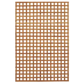 Contemporary, smooth-planed square trellis with 15mm thick by 30mm wide battens which give plenty of room for climbing plants to weave between. Dip-treated with a preservative to protect it from rot and give it a golden brown colour.