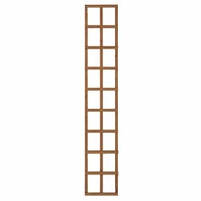 Traditional, smooth-planed square trellis with 15mm thick by 30mm wide battens which give plenty of room for climbing plants to weave between. Dip-treated with a preservative to protect it from rot and give it a golden brown colour. Suitable for mounting to a wall or fence to create a feature and train climbing plants.