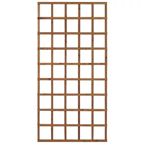 Traditional, smooth-planed square trellis with 15mm thick by 30mm wide battens which give plenty of room for climbing plants to weave between. Dip-treated with a preservative to protect it from rot and give it a golden brown colour. Suitable for mounting to a wall or fence to create a feature and train climbing plants.