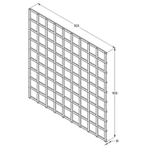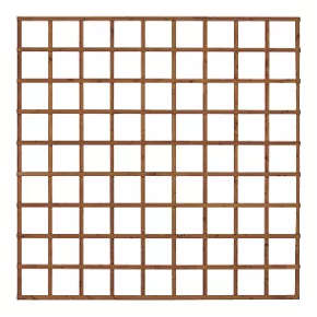 Traditional, smooth-planed square trellis with 15mm thick by 30mm wide battens which give plenty of room for climbing plants to weave between. Dip-treated with a preservative to protect it from rot and give it a golden brown colour. Suitable for mounting to a wall or fence to create a feature and train climbing plants.